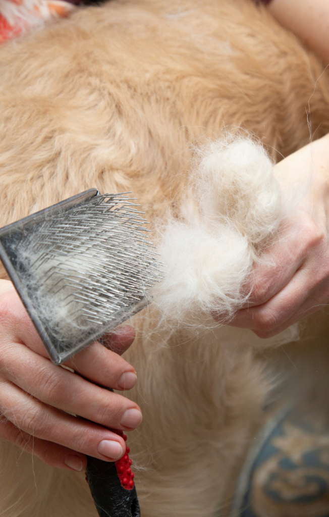 Experts say that brushing your dog’s coat every day could help in controlling hair shedding. Brushing their fur will help you detangle hair and removes the dead, broken hair. You need to be careful about the choice of brush which completely depends upon the thickness of the dog’s coat. Coarser hair may require stiff brushes while curly hair can be combed with fine bristled brushes.
